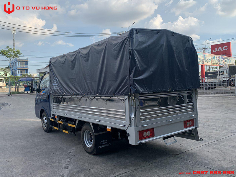Với thiết kế thùng xe lý tưởng như vậy nên dòng xe tải Teraco 180 này có thể vận chuyển một cách dễ dàng tối đa mức hàng hóa. Cản hông cản sau bằng inox, rất chắc chắn, đảm bảo an toàn cho hàng hóa khi di chuyển không may va chạm nhẹ.